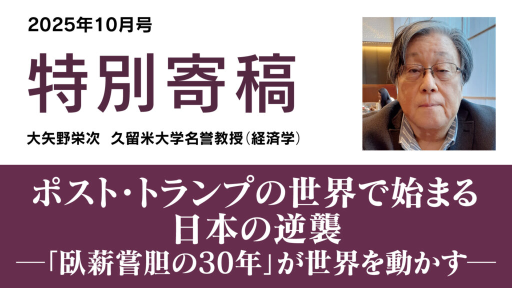 ドナルド・トランプ氏の「アメリカファースト」で「トランプ関税」が世界の貿易と安全保障の枠組みを根底から揺さぶっている。多くの識者が米中対立のさらなる激化を予測する一方で、大矢野教授はその二項対立の奥深くで、全く新しい世界秩序が静かにしかし着実に形成されつつあり、その鍵を握るのは、アメリカでも中国でもなくわが国だという。